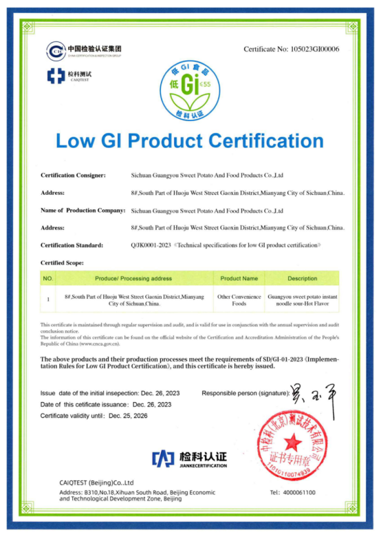 光友薯業(yè)對(duì)此次酸辣粉獲得低GI認(rèn)證表示非常榮幸和自豪,光友薯業(yè)表示,將繼續(xù)秉持“健康、美味、創(chuàng)新”的理念,不斷推出更多符合消費(fèi)者需求的健康食品,為人們的健康生活貢獻(xiàn)更多力量。