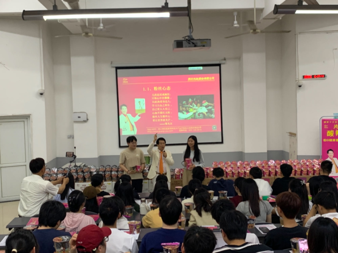 演講過程中,光友薯業(yè)董事長強(qiáng)調(diào),他與光友薯業(yè)始終不忘初心,從未停止過改變紅薯命運(yùn)的偉大愿景,光友薯業(yè)在32年間,共進(jìn)行了六次具有歷史突破性的粉絲革命,先后斬獲國內(nèi)外多項榮譽(yù)與專利,并在不久前全新發(fā)明了全球領(lǐng)先的低GI健康薯類主食——光友綿陽米粉和光友酸辣粉,科學(xué)健康和方便美味完美相融,該類粉絲一經(jīng)亮相,便立即受到了業(yè)內(nèi)外的認(rèn)可與追捧。現(xiàn)場同學(xué)食指大動,也對光友這個國貨老品牌有了全新的認(rèn)知。