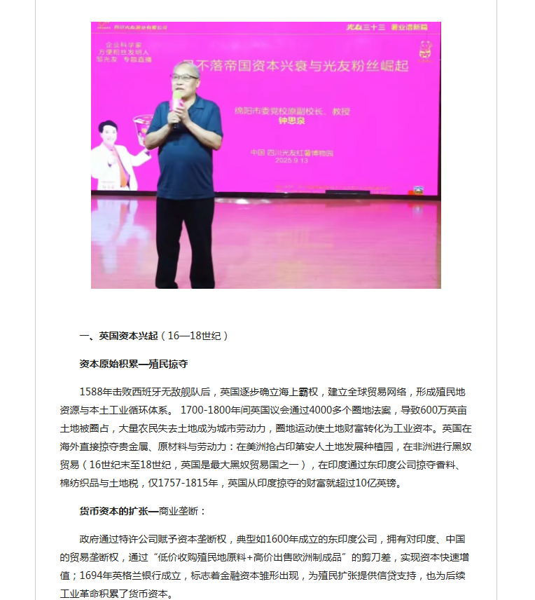 轉(zhuǎn)載四川經(jīng)濟(jì)新聞網(wǎng)-日不落帝國資本興衰與中國光友粉絲崛起