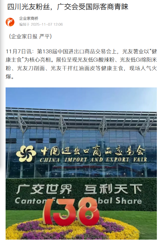 轉(zhuǎn)載搜狐網(wǎng)-四川光友粉絲,廣交會(huì)受國際客商青睞