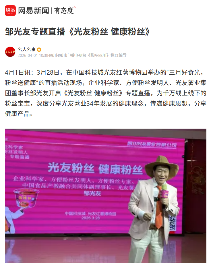 轉(zhuǎn)載網(wǎng)易新聞鄒光友專(zhuān)題直播《光友粉絲 健康粉絲》